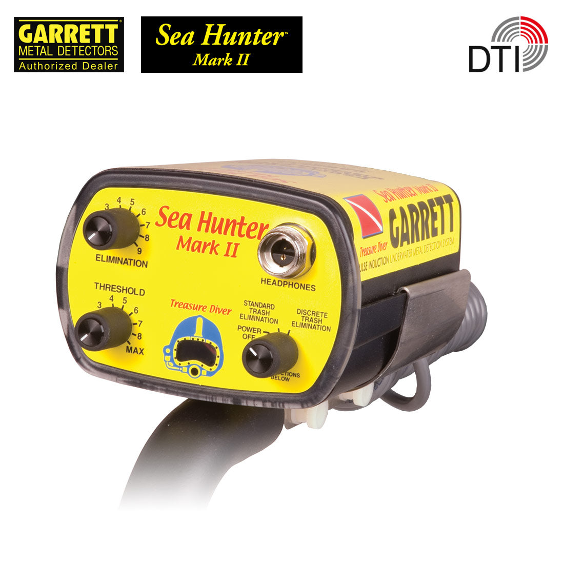 Mit dem Garrett Sea Hunter Mark II (2) Unterwasser Metalldetektor nach Schätzen bis zu 65 m Tiefe suchen! Absolut wasserdicht für Taucher und Schnorchler! Das ist der Sea Hunter Mark II Metalldetektor, der Favorit bei Tauchern weltweit, da dieser Puls-Induktions-Detektor Salzwasser ignoriert und damit im Salzwasser der Meere bevorzugt eingesetzt werden kann. Er ist im Süßwasser und Salzwasser funktionstüchtig.