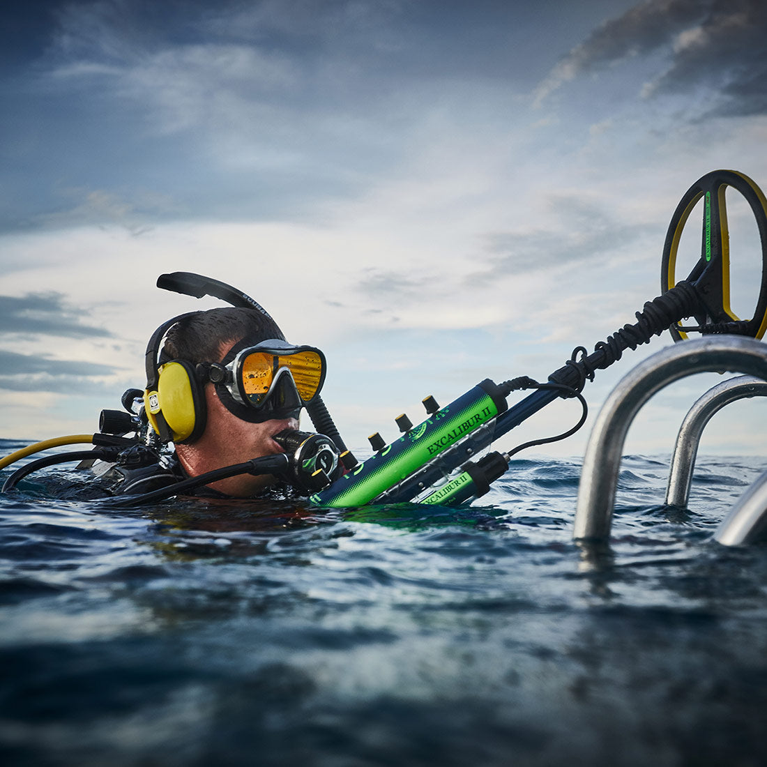 Der Minelab Excalibur II Metalldetektor ist perfekt geeignet für die Strandsuche in Salzwasser und Süsswasser und für Taucher, die in tiefen Gewässern nach versunkenen Schätzen suchen. Der Metalldetektor ist sehr robust und auch an Land bei extremen Suchbedingungen einzusetzen.