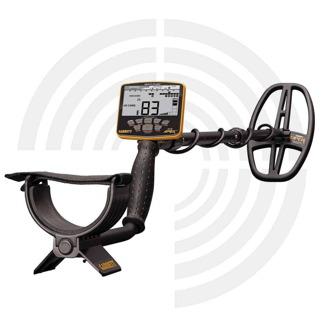 "Bringen Sie Ihre Erkennungsfähigkeit auf die nächste Stufe! Das neue ACE-APEX-Gerät stellt den Höhepunkt der erschwinglichen Metalldetektoren dar. Multi-Flex Multifrequen-Technologie, Multi-Salz-Detektor, Vielseitige Funktionen, Ausgezeichnete Suchtiefe bei einer Vielzahl von Zielen, leichte Suchspule Viper mit Reichweite und ausgezeichnete Zieltrennung, Gut ausgeglichenes Gewicht mit 1,13 kg.