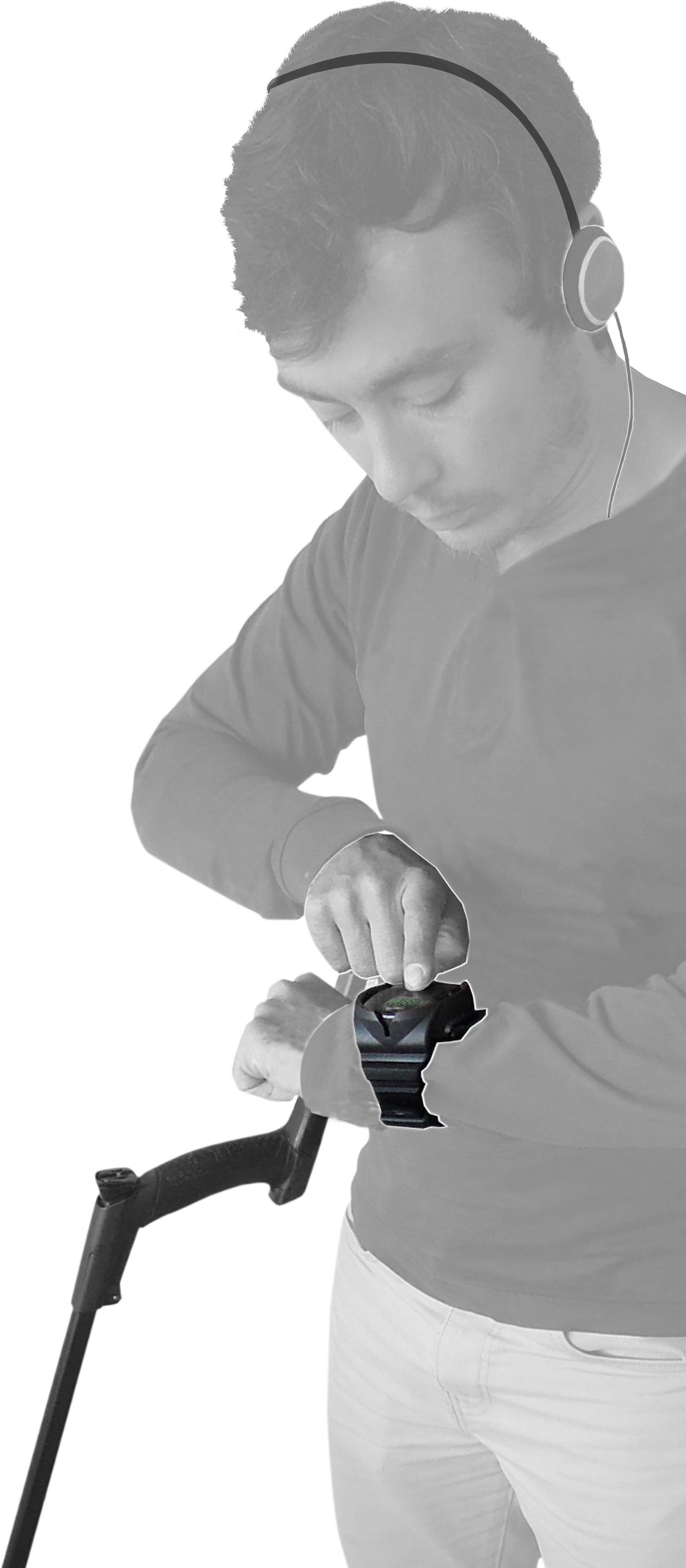 Das XP Deus Armband für den WS4 Empfänger. Das Empfangsteil wird vom Kopfhörer gezogen und mit eingeschobenem XP Adapter für WS4 Lite in das Armband gesteckt. Schließen Sie ihren eigenen Kabelkopfhörer an das Armband an, lesen Sie die Leitwerte wie von einer "Uhr" ab und bedienen ihren Deus!
