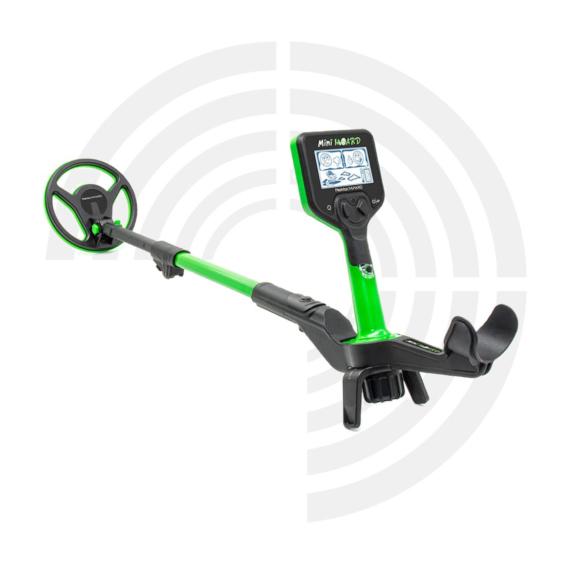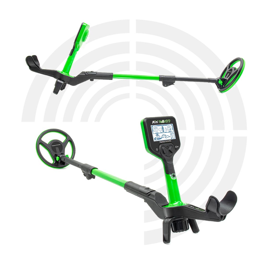 Der Mini Hoard ist ein langlebiger und stabiler Detektor. Herausragend ist sein Gewicht mit nur 780 g. Der Mini Hoard hat eine Armlehne für mehr Komfort beim Hin- und Herschwenken des Detektors. Einen Standfuß, auf dem der Mini-Hoard stabil stehen bleibt, wenn er beiseite gelegt wird. Und eine Teleskopgestänge, das auf eine Länge von 63 bis 90 cm eingestellt werden kann.