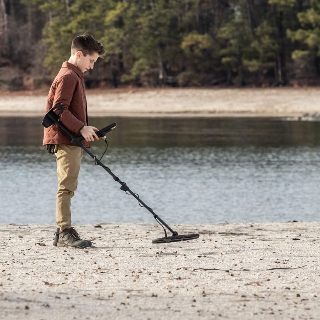 Mit der zuverlässigen 30cm DD-Suchspule (SC30) erzielt der SCORE beeindruckende Tiefe und Flächenabdeckung. Das Gerät verfügt über eine präzise Pinpoint-Funktion, 60 Leitwerte zur Zielidentifikation sowie eine LED-Taschenlampe für die Suche bei Dämmerung. Trotz der robusten Bauweise bleibt der SCORE mit nur 1,2 kg erstaunlich leicht. Der integrierte Li-Po Akku bietet bis zu 12 Stunden Laufzeit und lässt sich bequem per USB aufladen.
