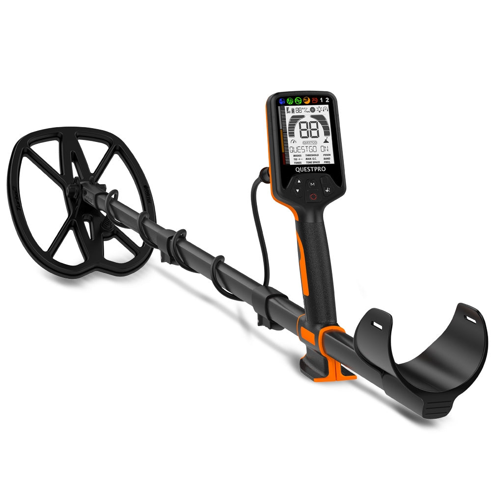 Der Quest Pro Metalldetektor ist komplett wasserdicht bis zu einer Tiefe von 5 Metern. Es kann im Unterwasser sowie als auf dem Land eingesetzt werden. Auch im Regen kann der Detektor verwendet werden. Für stark mineralisierte Böden ist der Quest Pro ideal. (Seit März 2018 gibt es ein "Salz"-Update, dies kann über das Online Firmware Software Update System heruntergeladen werden)
