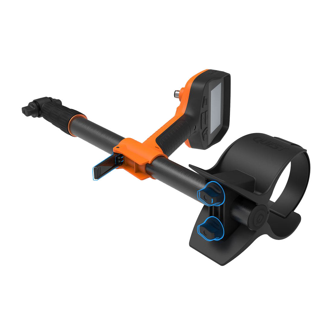 Mit dem Quest V80 wird ein kabelloser Quest Wireless Pro Kopfhörer und eine 28 x 26 cm große Blizzard-Suchspule für optimale Leistung mitgeliefert. Der eingebaute 5000-mAh-Li-Po-Akku wird mithilfe eines USB-Typ-C-Kabels aufgeladen und beitet bei einer voller Ladung eine Nutzung von 10 bis 15 Stunden.