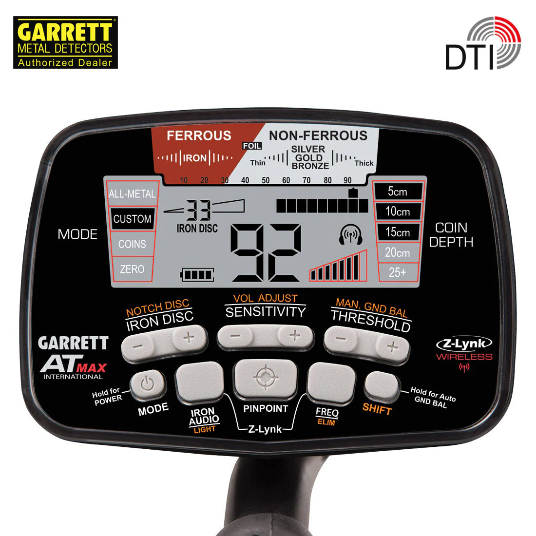 Der Garrett AT MAX steht für Maximum Detection. Der Metalldetektor ist leistungsstark, kabellos und für alle Geländearten geeignet. Dieser neuer All-Terrain (AT) Detektor ist mit der neuesten Garrett Technologie aus der AT Serie ausgestattet. Der neue AT MAX vereint die guten Eigenschaften aus der AT Serie. Mit neuer patentierter Prozessor-Technik und nochmal gesteigerter Tiefenleistung. Eine maximale Tiefe kann im TRUE ALL Metall Mode ohne Vorfilter auf sehr tiefliegende Objekte erreicht werden. Übrigens können alle vorhandenen AT Spulen verwendet werden - Umsteiger freut´s! Vorteilhaft ist auch, dass sich auch der Hintergrundton auf 9 Stufen verstellen lässt. Mit ihm finden Sie altertümliche Objekte, Schatzkisten, Schmuck und Goldnuggets.