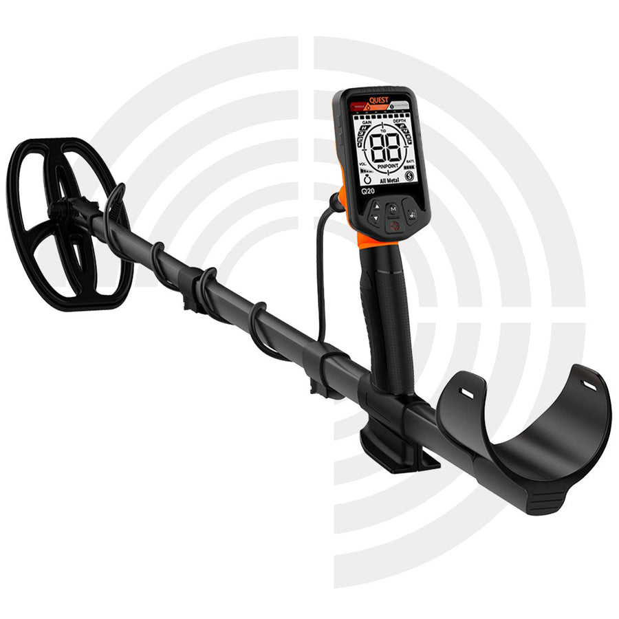 Der Quest Q20 Metalldetektor zeichnet sich durch eine gute Leistung, sehr einfacher Bedienung und einem ergonomischen und modernem Design aus. Mit dem großen Display hat man alle Angaben immer im Blick. Er verfügt über alle wichtigen Funktionen einschließlich Eisen-Diskrimination, ID Leitwert und auch eine Punktortungsfunktion (Pinpoint). Der Quest hat eine scharfe und schnelle Reaktionsgeschwindigkeit und ist in der Lage zu erkennen, ob es sich um mehrere Objekte handelt. Die Chance ist sehr hoch, dass man kein Objekt mehr überläuft!