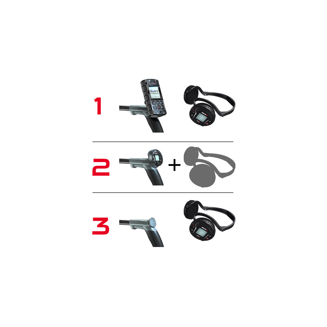 Die Fernbedienung (RC) bietet Ihnen eine fortschrittliche Benutzeroberfläche mit zahlreichen Anpassungsmöglichkeiten und einem großen, gut lesbaren Display. Mit der patentierten, stoßgeschützten und wasserdichten Fernsteuerung können Sie die internen Einstellungen des DEUS II stuern. Die Fernsteuerung kann am S-Teleskop-Gestänge an einem praktischen Clip-Halter befestigt oder in einer mitgelieferten Gürteltasche verstaut werden.